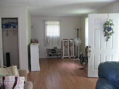 Changes to this side of the kitchen include a new granite counter top, nickel hardware, elegant faucet, and roman shade in a yummy dark chocolate. And of course, a creamy gray paint color creates a calm feel in the work zone. No need to change the cabinets or appliances. Wow....what a difference!